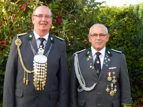 Dankesworte, bei seinen Schützenbrüdern und Schützen-schwestern. Zusammen mit seinem Adjutanten Joachim Bleich,
